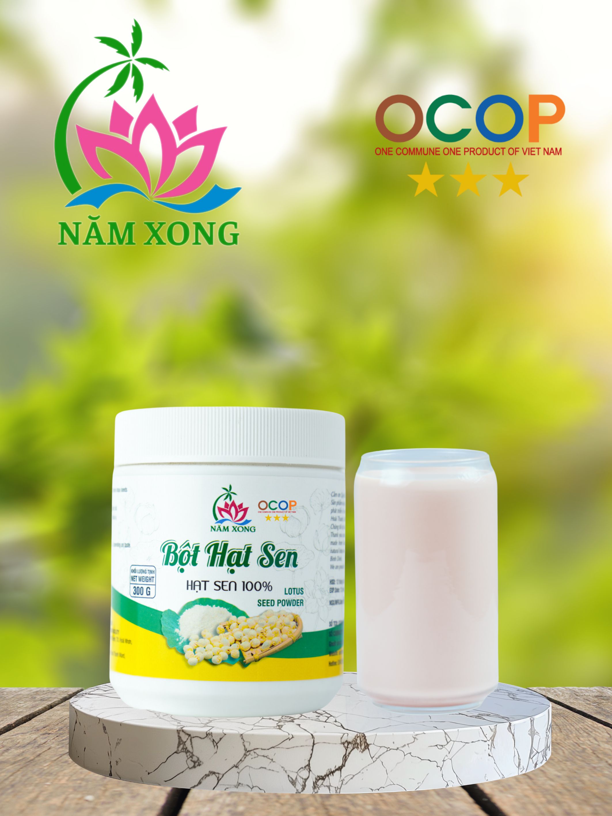 Bột hạt sen: Được lựa chọn từ những hạt sen già, bùi, giàu tinh bột, được sấy và nghiền...