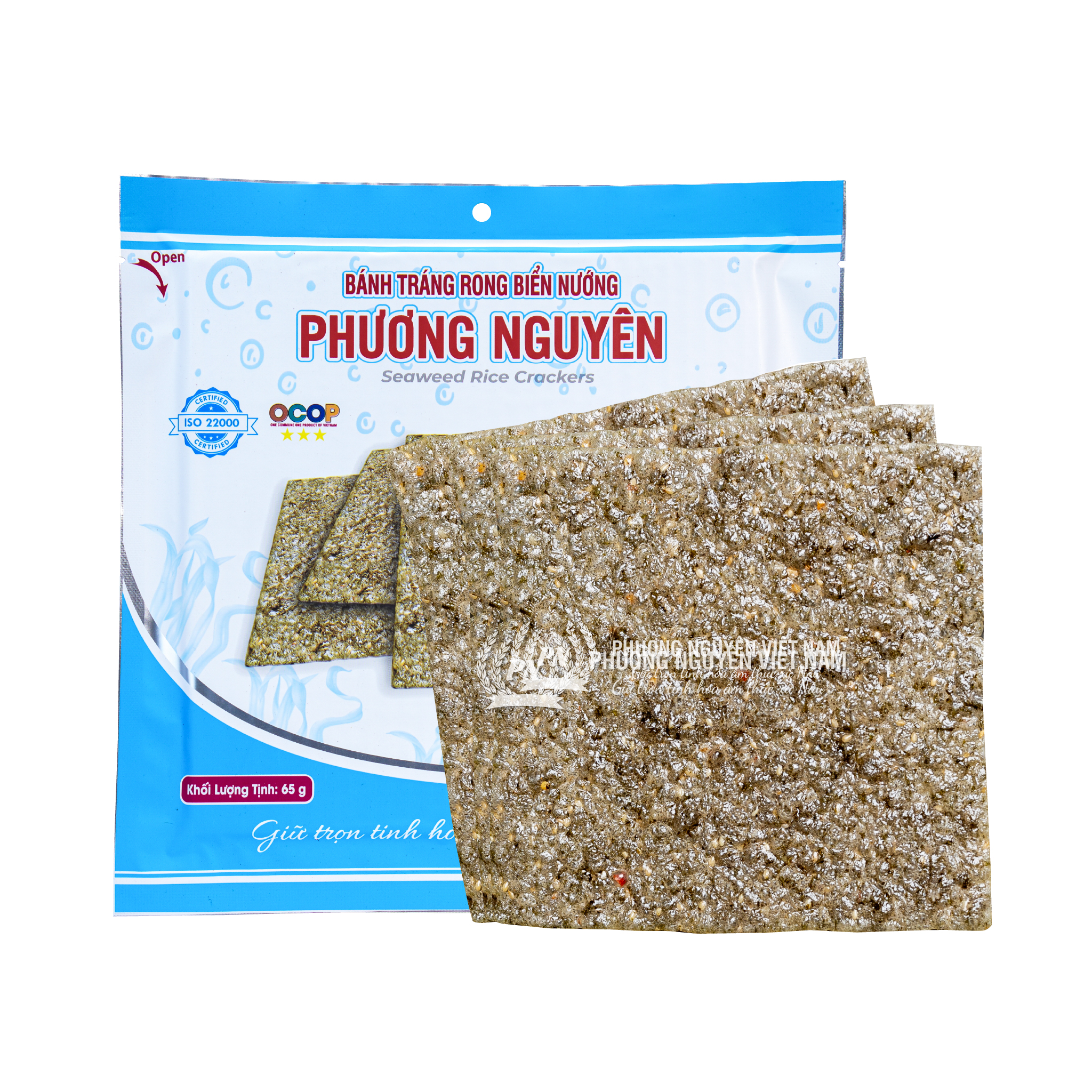Bánh được làm từ thành phần chính là bột mì, rong biển, mè, muối, hành, ớt. - Bánh được sản...