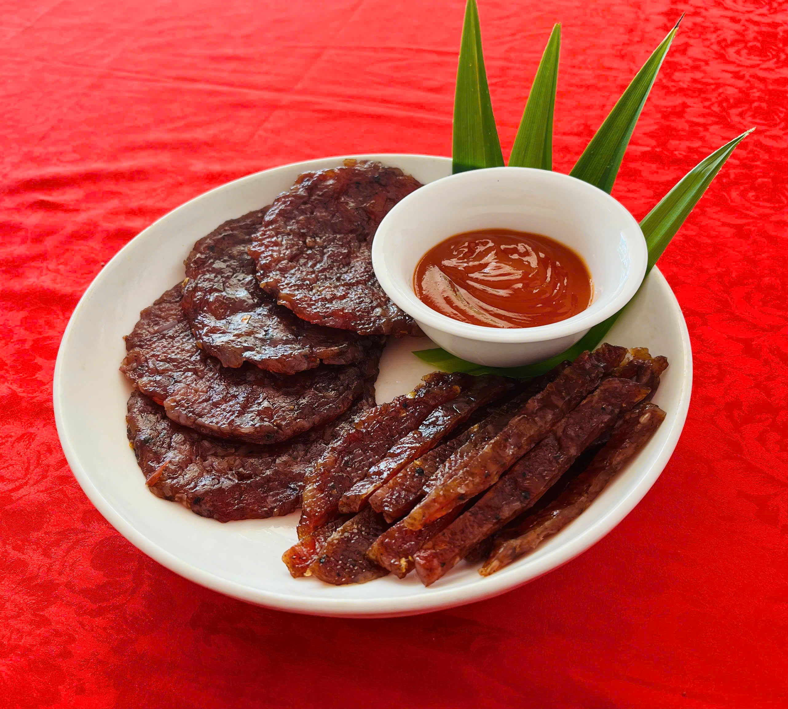 Gà Xanh Sấy Dẻo là món ăn đặc sản độc đáo được chế biến từ phần đùi gà thả đồi săn chắc – gia vị thiên nhiên, sấy chậm ở nhiệt độ thấp để giữ trọn độ dẻo mềm và hương vị đậm đà